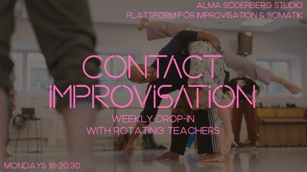 This is a class for both beginners and experienced. Before each new teacher takes on their block of four weeks we will post about their practice. Some teachers practice might be more directed towards beginners or experienced. However, in Contact Improvisation you will most likely be able to practice any exercise on your level of experience that day.